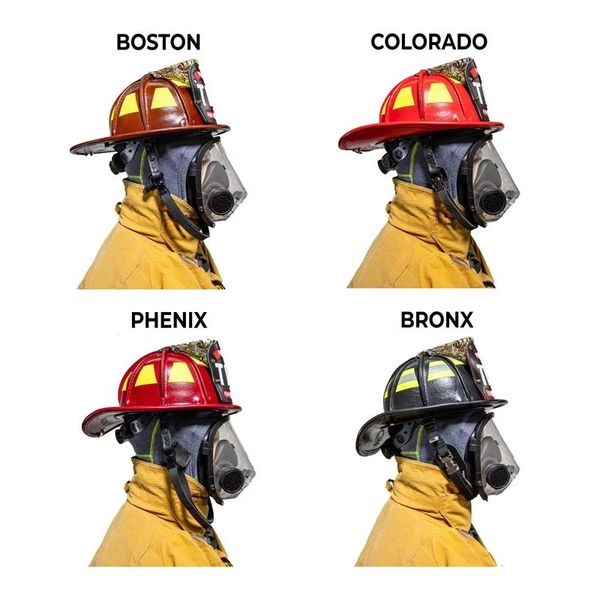 Phenix Technology Inc.'s Traditional Composite helmet boasts a low center of gravity and is center balanced, thus promoting a very low degree of neck fatigue. Our traditional composite models interface with any SCBA mask. We offer several options when building your custom TC-1. Compliant to current OSHA and NFPA 1971 standards.